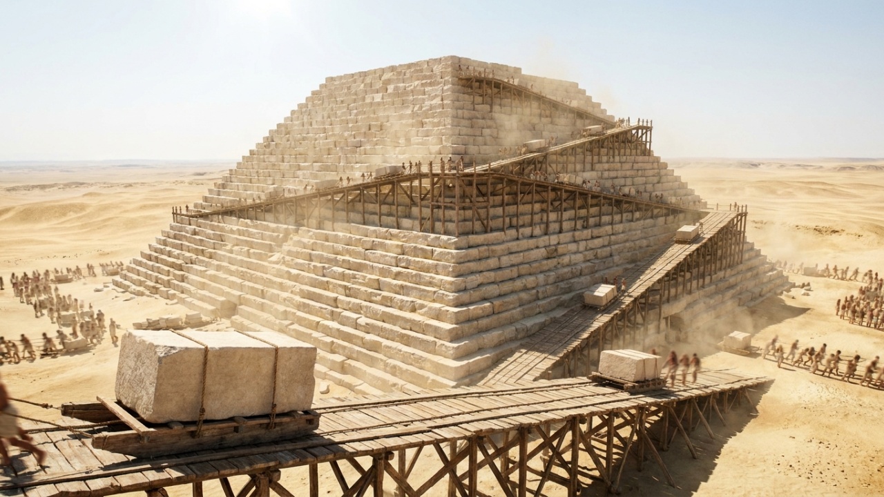 A Grande Pirâmide de Gizé tem mais de 4 mil anos, 146 metros de altura e 2,3 milhões de blocos de pedra. E ainda ninguém sabe ao certo como foi construída. Uma nova hipótese, desenvolvida com modelagem computacional e publicada em periódico científico do grupo Nature, propõe a explicação mais detalhada já simulada para esse enigma, e os números que ela produz surpreendem até os céticos.