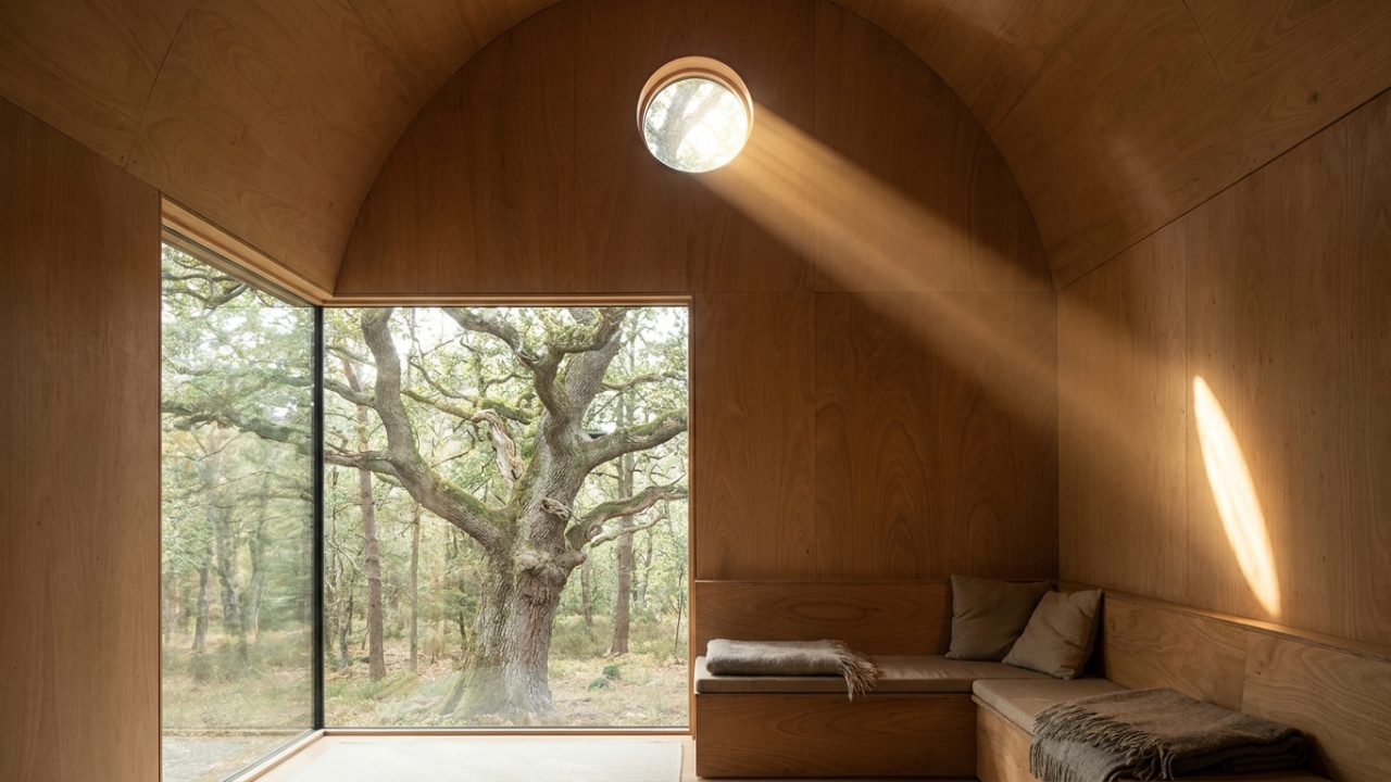 Como os quatro volumes abobadados acompanham o ritmo do bosque?