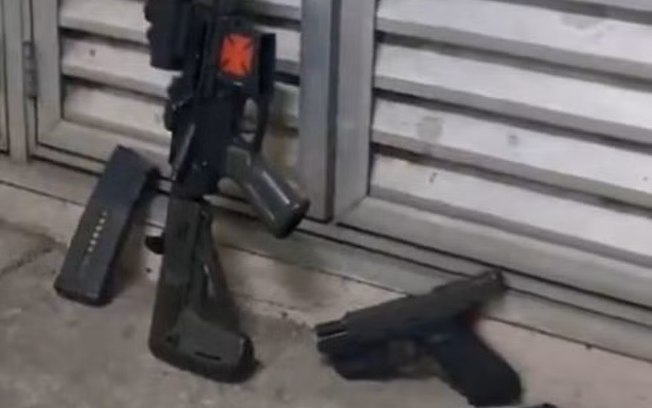 Na ocorrência, os policiais apreenderam um fuzil, uma pistola, munições, um carregador e drogas.