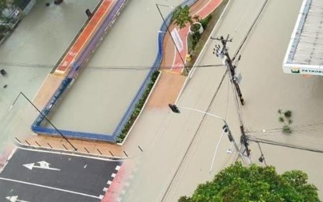 Só no domingo, choveu cinco vezes mais que o esperado para um dia de abril. A média diária é de 15,51 milímetros, mas a cidade enfrentou 78,2 milímetros de um vezReprodução Redes Sociais
