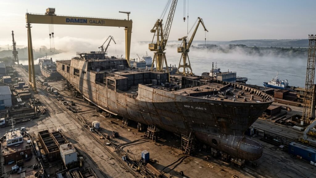 Nenhum outro país da Europa tem um navio como o que Portugal acaba de lançar ao mar. O porta-drones NRP D. João II, lançado no dia 7 de abril nos estaleiros da Damen em Galați, na Romênia, é uma plataforma única no continente e custou 132 milhões de euros para ser construída.
