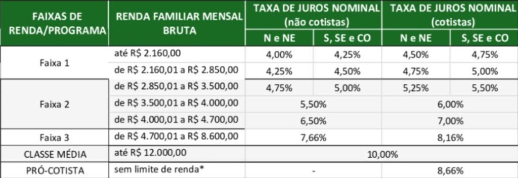 Uma das grandes sacadas dessa mudança está no efeito cascata sobre os juros. Como o programa funciona com taxas progressivas (quanto menor a renda, menor o juro), o reenquadramento pode reduzir o custo total do financiamento.