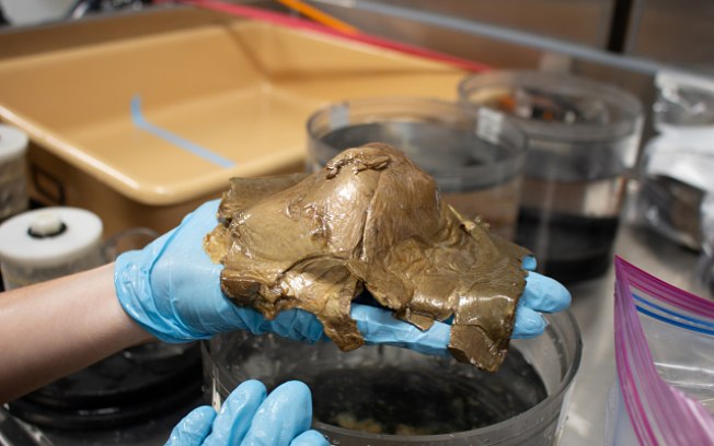 Para tentar solucionar o mistério, a equipe coletou o material com um dispositivo de sucção e o enviou ao Museu Nacional de História Natural do Smithsonian, onde passou por uma série de análises aprofundadas.
