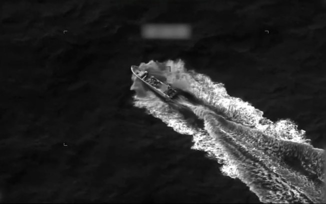O vídeo da operação foi divulgado no X (antigo Twitter) mostrando um barco navegando rapidamente antes de uma explosão o consumir em chamas.