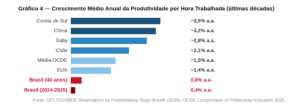 As raízes da baixa produtividade brasileira são bem documentadas e completamente ignoradas por esta PEC. O Brasil ocupa a 46.ª posição de 66 no Índice Firjan de Competitividade Global. Uma tecnologia de US$ 100 chega ao Brasil por US$ 220, por conta da tributação perversa sobre insumos tecnológicos. A infraestrutura é deficiente. O capital humano tem baixo nível de formação prática. A regulação trabalhista impede a alocação eficiente de mão de obra. Nenhum desses vetores é tocado pela PEC. A solução real passa por negociação coletiva livre, redução do custo sistêmico, reforma educacional com foco em competências práticas e desburocratização. Passa por abrir o Brasil ao comércio internacional, algo em que ficamos para trás até de outros emergentes. Passa por não criar novas distorções para corrigir antigas, como a ideia de compensar empresas com renúncia fiscal num país com déficit primário estrutural.