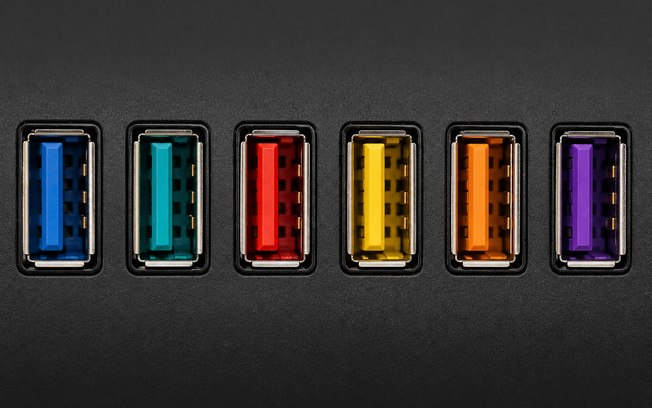 Os códigos de cores das portas USB ajudam, mas apenas como uma referência aproximada. Há anos circula uma regra simples no uso cotidiano de computadores: branco indica USB 1.x, preto representa USB 2.0, azul sinaliza USB 3.x, enquanto vermelho ou amarelo costumam apontar portas mais rápidas ou com alimentação contínua. As informações são do igor’sLAB.