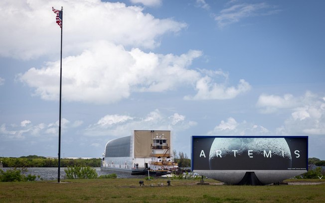 A estrutura percorreu cerca de 1.400 quilômetros a bordo da barcaça Pegasus, partindo da fábrica da NASA em Michoud Assembly Facility, onde o componente é produzido. A chegada marca uma etapa importante para a montagem final do foguete.