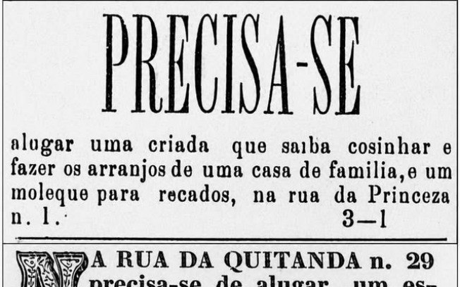 Por outro lado, também era frequente o movimento inverso: pessoas, famílias e estabelecimentos comerciais divulgavam anúncios solicitando o aluguel de escravizados para tarefas específicas, como serviços domésticos, transporte de cargas, atividades urbanas, ofícios especializados ou trabalhos rurais sazonais. Isso demonstra como a economia escravista estava profundamente integrada ao cotidiano e funcionava com grande flexibilidade.