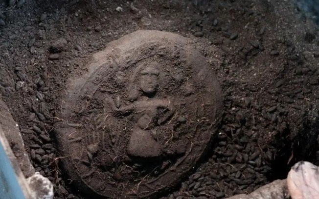 Pão de 1.300 anos, com a imagem de Cristo estampada é encontrado na Turquia. encontrado Reprodução/Governo de Karadan