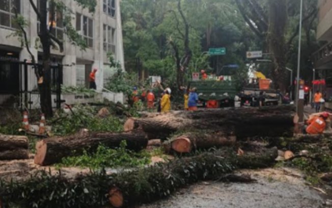 Na capital paulista, o temporal derrubou uma árvore na Alameda Santos, no Jardim Paulista, região próxima à Avenida Paulista. Não houve vítimas, e equipes da Prefeitura realizaram a retirada da árvore para liberar a via.
