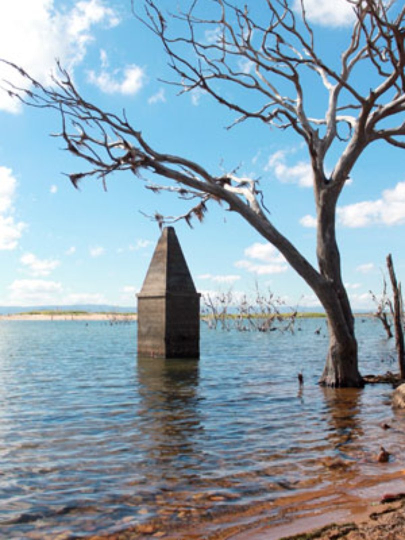 A construção do lago provocou deslocamentos massivos, perda de terras produtivas e patrimônio material, cultural e imaterial. À medida que o nível do lago baixa, antigas ruínas voltam à tona e rememoram vidas apagadas pela cheia.