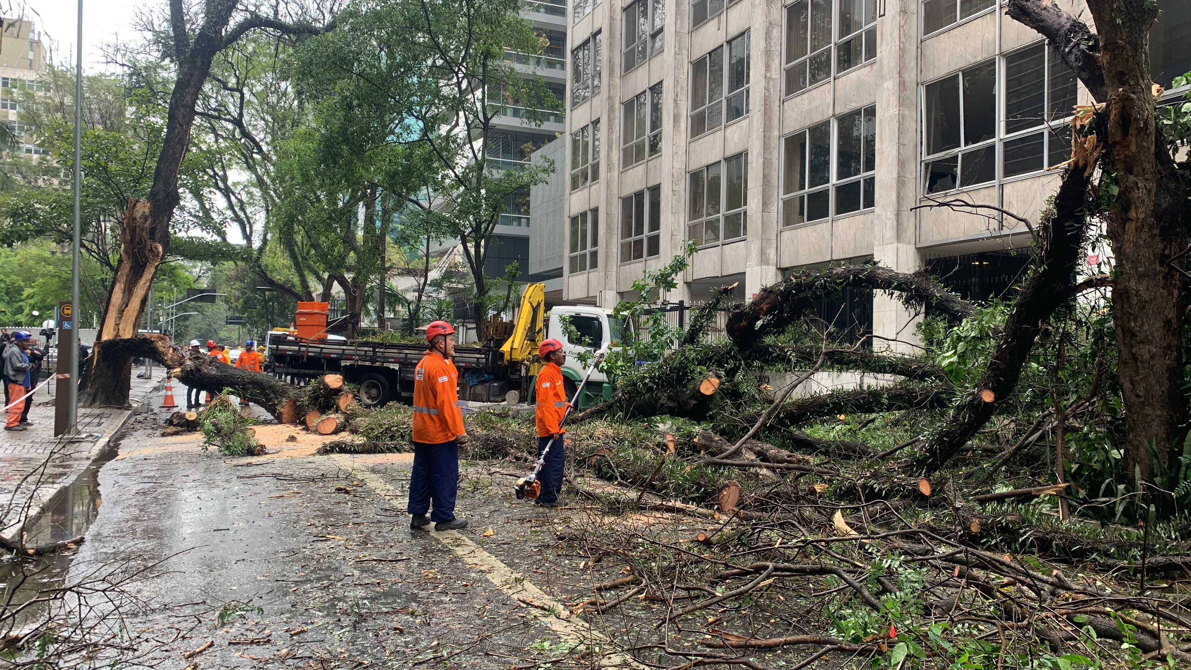 Mais cedo, duas árvores caíram em razão da ventania e bloquearam totalmente um trecho da Alameda Santos, na região da Avenida Paulista, Centro de São Paulo.