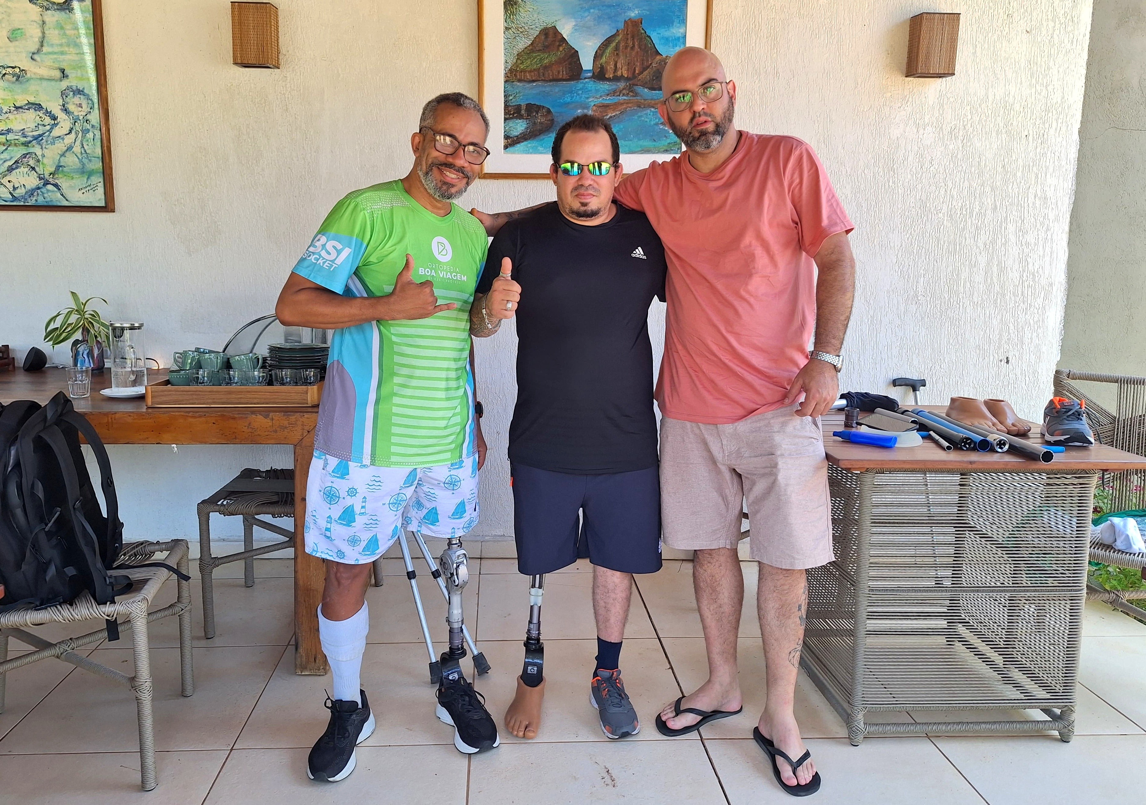 Waldir Calado, Isaac Silba e Luiz Henrique Velasco na primeira entrega de prótese em Noronha
