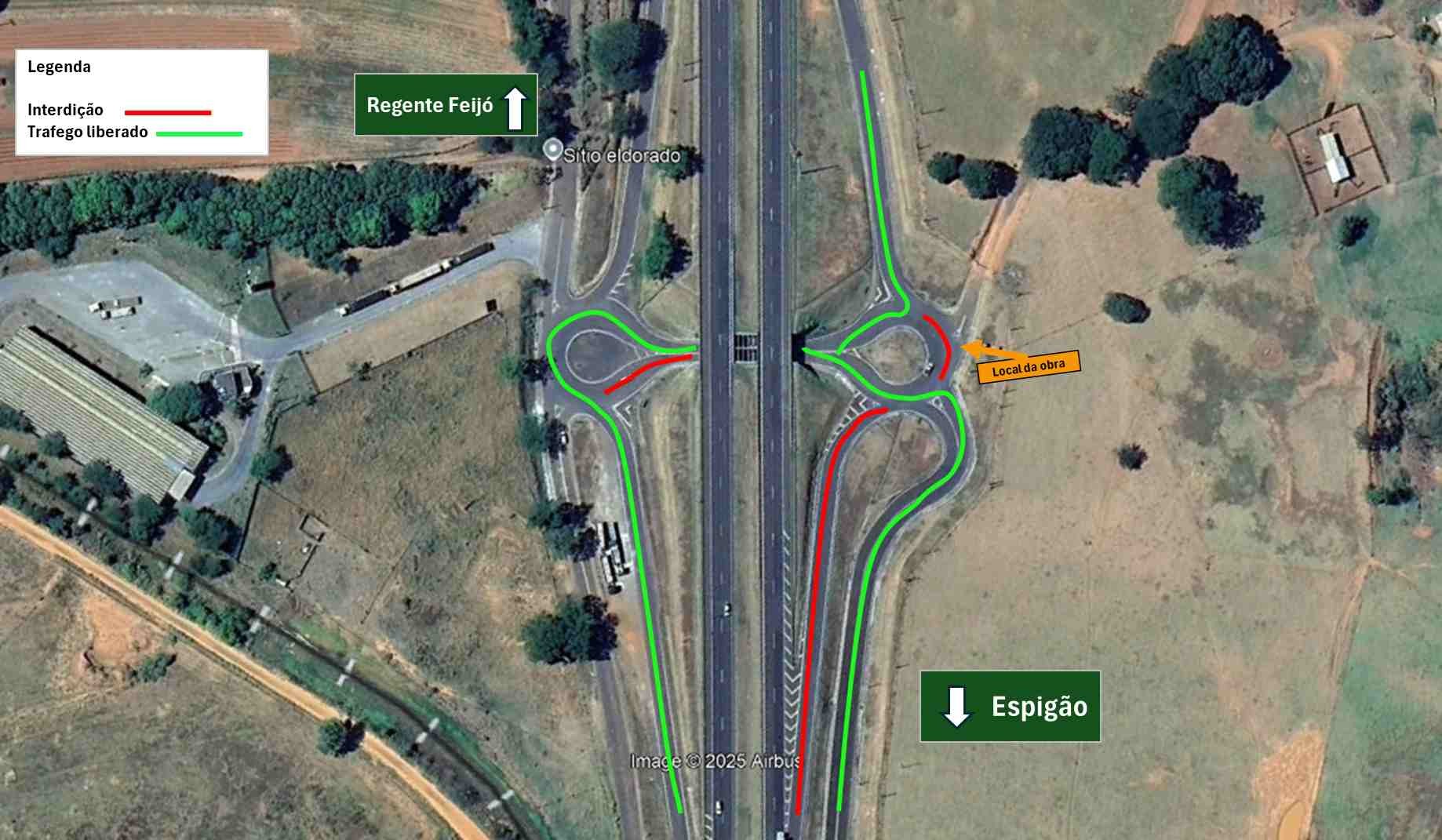 Sentido capital: retorno alternativo no km 555;