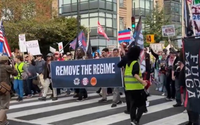 “O que foi realmente odioso aconteceu em 6 de janeiro, com a invasão do Capitólio. O que veremos neste fim de semana é patriotismo — cidadãos protestando contra o extremismo que Trump voltou a liberar sobre o povo americano”, declarou.