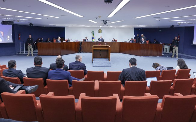 A sessão inicia com o voto do relator, ministro Alexandre de Moraes, e segue com os votos dos ministros Cristiano Zanin, Luiz Fux, Cármen Lúcia e Flávio Dino, presidente do colegiado.