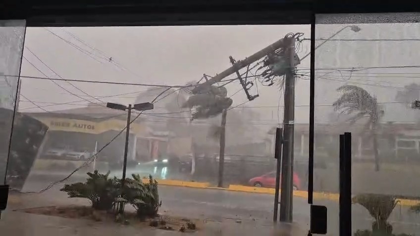 Além disso, funcionários de um estabelecimento comercial registraram o momento em que um reservatório metálico de água caiu durante a chuva. Veja o momento no vídeo abaixo.