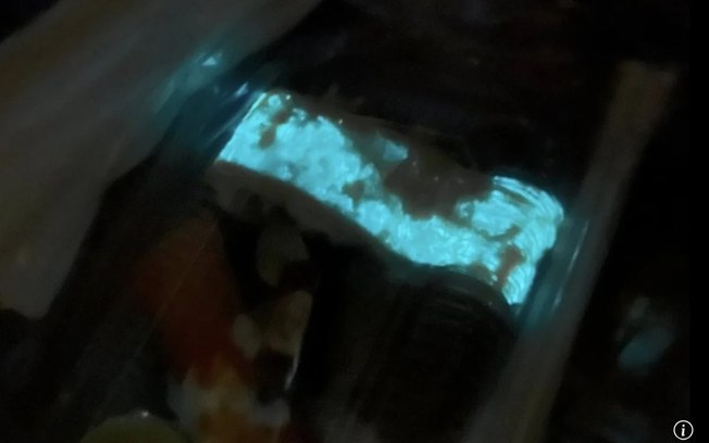 A usuária identificada como Mild Burusskorn contou que havia comprado o alimento em uma loja de uma marca conhecida, cujo nome não foi revelado, e percebeu o brilho enquanto estava em seu carro.