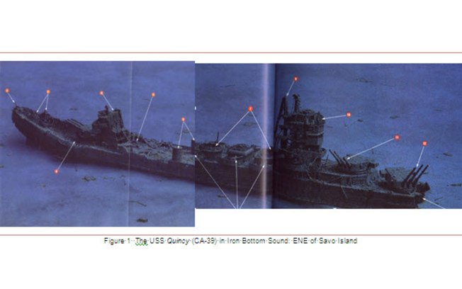 O USS Quincy fazia parte da classe New Orleans e foi destruído em agosto de 1942, durante a Batalha da Ilha de Savo, um dos confrontos mais sangrentos da campanha do Pacífico. O cruzador foi atingido por torpedos e projéteis da Marinha Imperial Japonesa, afundando rapidamente com centenas de tripulantes a bordo. Outros dois navios americanos, o USS Astoria e o USS Vincennes, também foram perdidos no mesmo ataque surpresa.