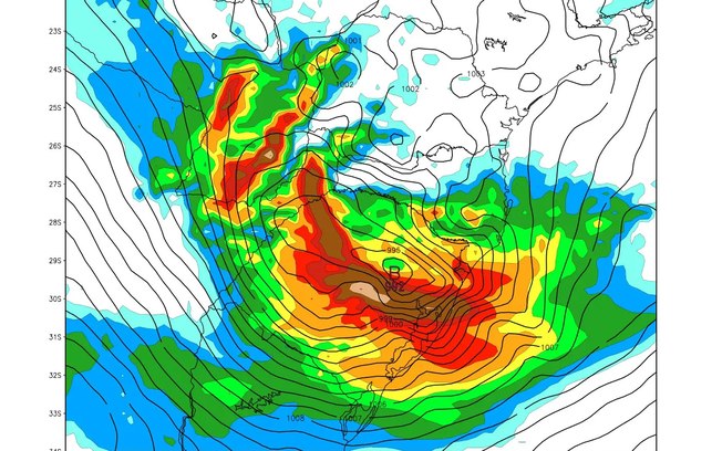 Alguns modelos, inclusive, apontam a possibilidade de a pressão em áreas do Sul do Brasil atingir entre 990 hPa e 993 hPa, níveis considerados muito baixos e raros dentro da climatologia da região.