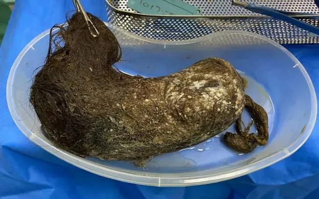 No caso recente, a “cauda” da bola de cabelo, composta também por fios de algodão, se estendia do estômago da criança até o intestino delgado e a vesícula biliar, algo considerado inédito pelos especialistas.