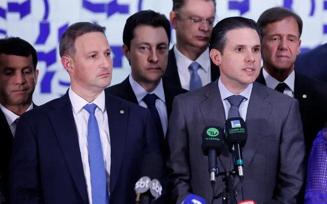 O deputado estava acompanhado do presidente da Câmara, Hugo Motta (Republicanos-PB), que no início da tarde retirou da pauta da sessão a votação do PL, por falta de consenso entre líderes e o governo.