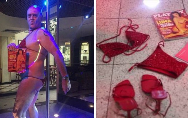 Oscar Maroni com o biquini de Luma de OliveiraReprodução: Internet