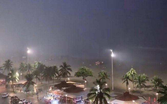 Chuvas fortes, ventos e tempestade de raios atingem a região da Baixada Santista, em São Paulo, na noite desta quinta-feira (01). Defesa Civil emitiu alerta severo para população e municípios vizinhos.