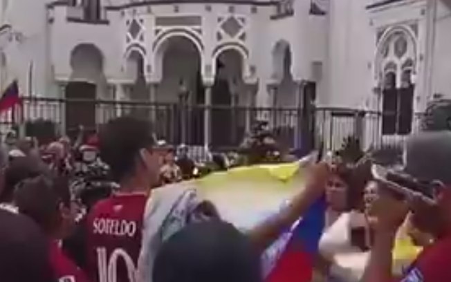 Os manifestantes em Santiago gritavam frases como “Obrigado, Chile”, em referência ao país que abriga milhares de exilados políticos e refugiados da crise venezuelana.