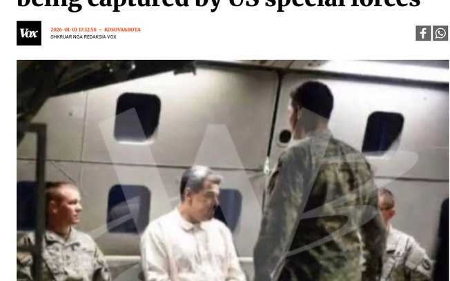Em seguida, proliferaram fotografias do ditador sendo levado por forças militares americanas, de terno com as mãos às costas ou, ainda, vestido com pijama em um estranho avião com duas fileiras de janelas — ambas as imagens falsas. “Com base em minhas análises, toda essa imagem, ou a maior parte dela, foi criada ou editada usando o Google AI”, apontou o chatbot do Gemini após analisar as imagens citadas. Ainda assim, centenas de milhares de pessoas as compartilharam, assim como veículos de imprensa, como o exemplo abaixo.