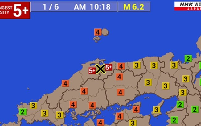 Nas províncias de Shimane e de Tottori, o terremoto foi de intensidade acima da Classe 5, na escala japonesa que vai de 0 a 7, nas áreas mais atingidas, de acordo com informações da emissora NHK World Japan.