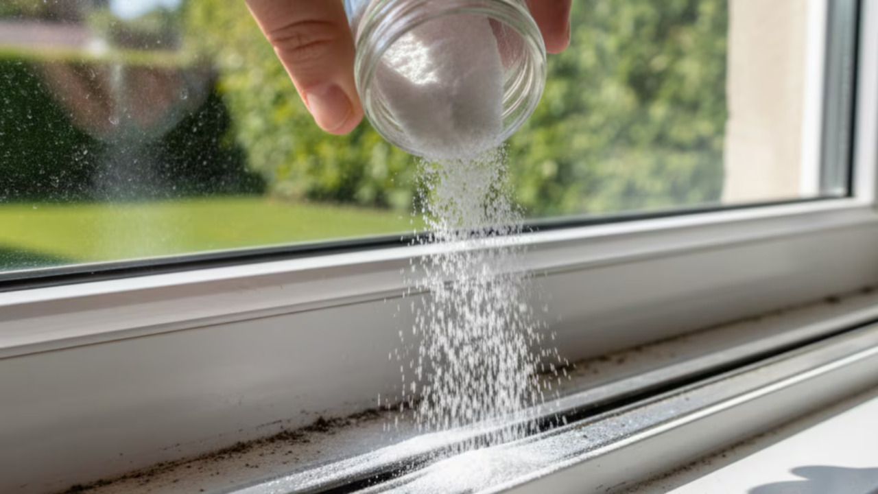 O bicarbonato de sódio nos trilhos das janelas remove a sujeira difícil