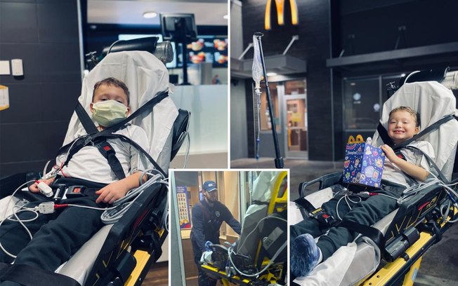 Uma equipe de paramédicos fez uma parada inusitada durante o transporte de um paciente pediátrico em Oklahoma, nos Estados Unidos. O menino Jaxon McGee, de 6 anos, estava sendo transferido de um hospital em Norman para o OU Health University of Oklahoma Medical Center, em Oklahoma City, nos Estados Unidos, quando pediu para passar por uma unidade do McDonald’s. Após autorização médica, o pedido foi atendido. A informação é do NY Post.