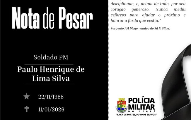 A Polícia Militar do Ceará também emitiu nota de pesar e informou que, o soldado Paulo Henrique de Lima Silva, ingressou na corporação em junho de 2018 e estava lotado na 2ª Companhia do 19º BPM, em Fortaleza.