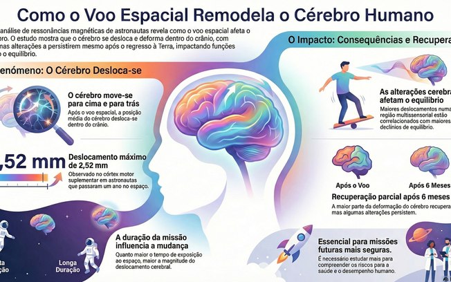 Um dos dados mais impressionantes mostrou que o córtex motor suplementar, área que ajuda a controlar os movimentos, chegou a se mover 2,5 mm para cima em missões de um ano.