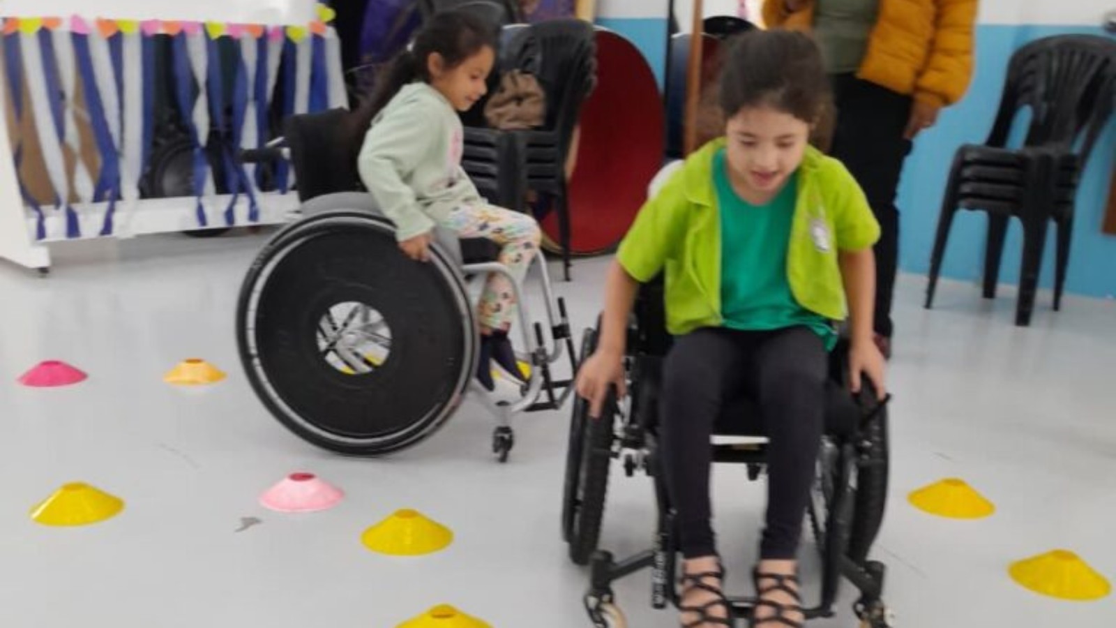 Além de poderem conhecer as instalações da sede da Adefip, os alunos também participaram de dinâmicas como circuito com cadeira de rodas, circuito de olhos vendados e peso na perna simulando dificuldade motora, vivências de grande importância para a conscientização das crianças sobre inclusão e respeito.