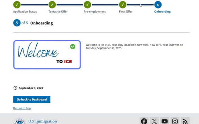 A situação tornou-se ainda mais contraditória quando, em 3 de outubro, a plataforma de empregos do ICE indicou que Laura havia sido aprovada em um teste de aptidão física supostamente realizado no dia 6 de outubro — “ou seja, três dias no futuro”.