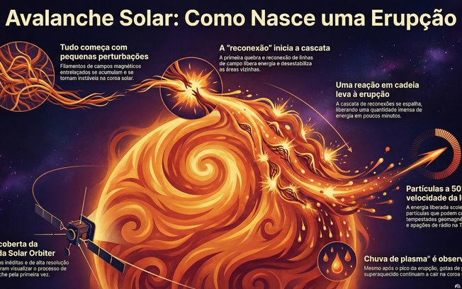 Assim como uma avalanche de neve começa com um pequeno deslocamento quase imperceptível, grandes erupções solares também podem ter origem em perturbações aparentemente fracas. Essa é a principal conclusão de um novo estudo, baseado em observações inéditas da missão Solar Orbiter, da Agência Espacial Europeia (ESA).