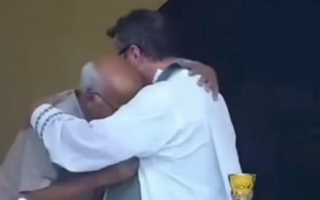 A cena foi gravada por fiéis e começou a circular nas redes sociais nesta quinta-feira (22), chamando atenção pela intensidade do momento. No vídeo, o homem se aproxima do padre Carlos Henrique visivelmente desorientado e encontra no celebrante um gesto imediato de acolhimento.