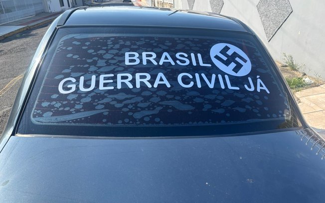 Segundo a Polícia Civil, o homem saiu na rua em um carro com a frase “Brasil, guerra civil já” ao lado do símbolo da suástica. O veículo chamou a atenção e começou a viralizar nas redes sociais.