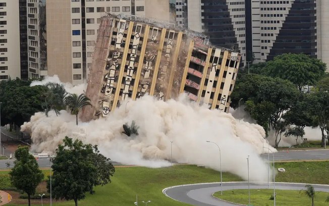 O antigo edifício Torre Palace Hotel, localizado no Setor Hoteleiro Norte, no centro de Brasília, foi implodido às 10h01 deste domingo (25). A operação utilizou explosivos posicionados nos andares mais baixos, fazendo com que a estrutura de 14 andares, considerada condenada, ruísse em segundos.