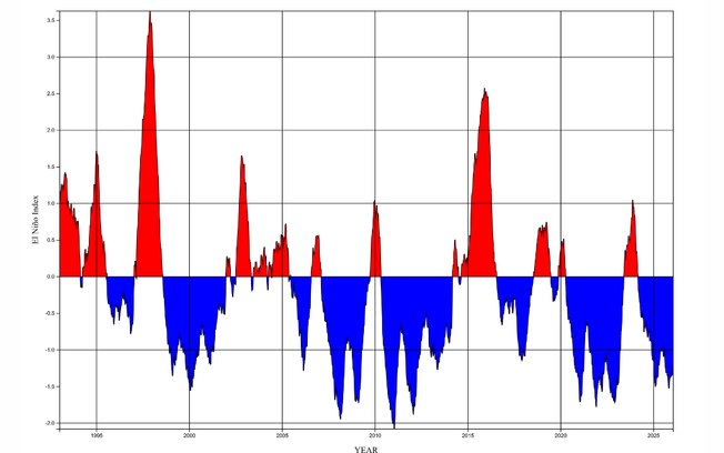 O episódio de La Niña de 2025 e 2026 chegou ao fim após quatro a cinco meses de águas superficiais mais frias que a média no Oceano Pacífico, abrindo caminho para um período de neutralidade antes da possível instalação de um El Niño ainda em 2026.