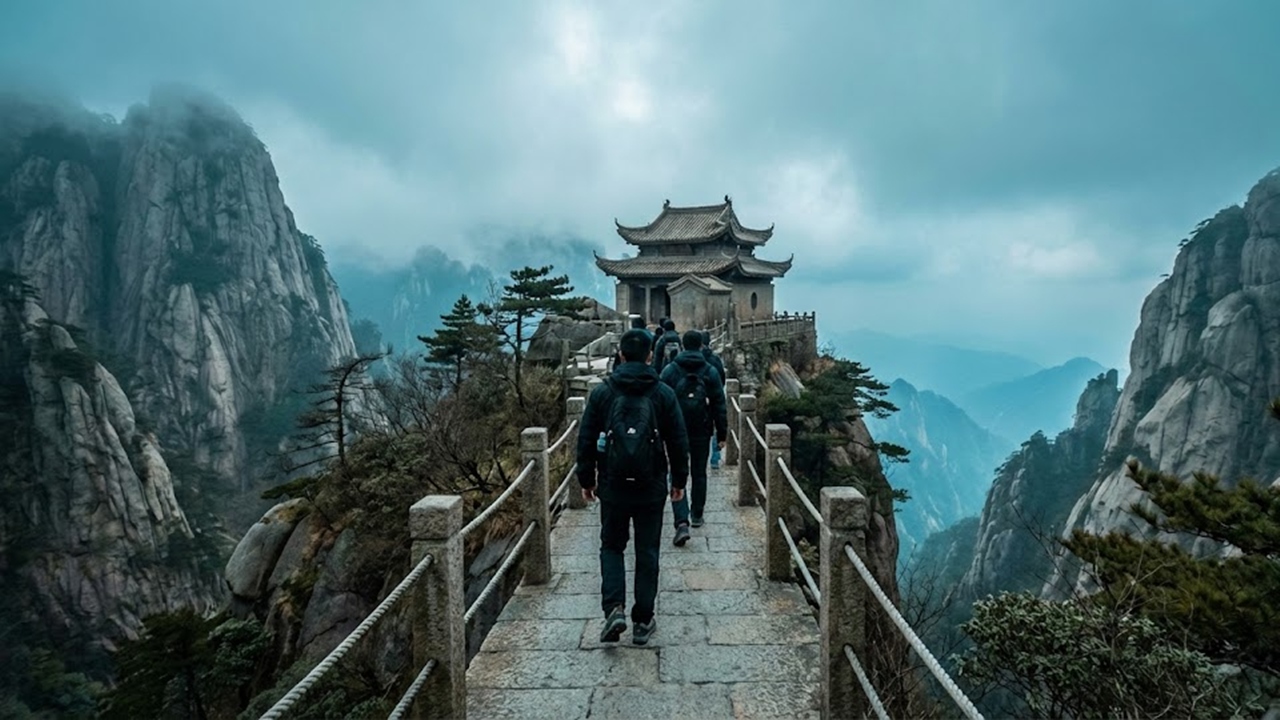 Para os mais corajosos, trechos com piso de vidro transparente criam a ilusão de caminhar sobre o vazio. A segurança dessas construções é garantida por técnicas de engenharia chinesa especializadas em terrenos cársticos e graníticos, acostumadas a lidar com grandes altitudes e ventos fortes.