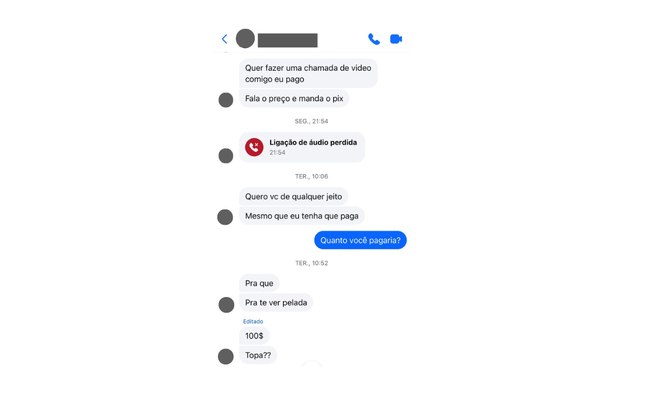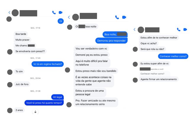 Em outro momento de apuração, um detento chegou a oferecer R$100 via Pix para que fosse realizada uma chamada de vídeo com o perfil utilizado pela reportagem. O homem, que afirmava estar apaixonado e havia feito repetidos pedidos de namoro, condicionou o pagamento à exibição do corpo da suposta usuária sem roupas.