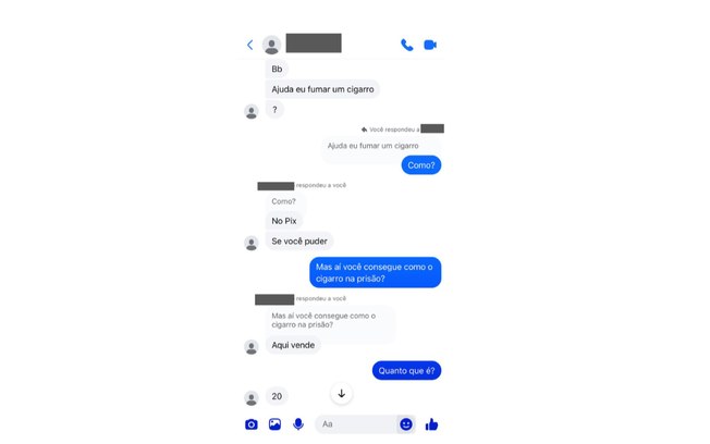 Relatos observados pela reportagem e interações nos próprios grupos reforçam esse cenário. Um dos detentos entrevistados chegou a pedir um Pix de R$ 20 para comprar cigarros.