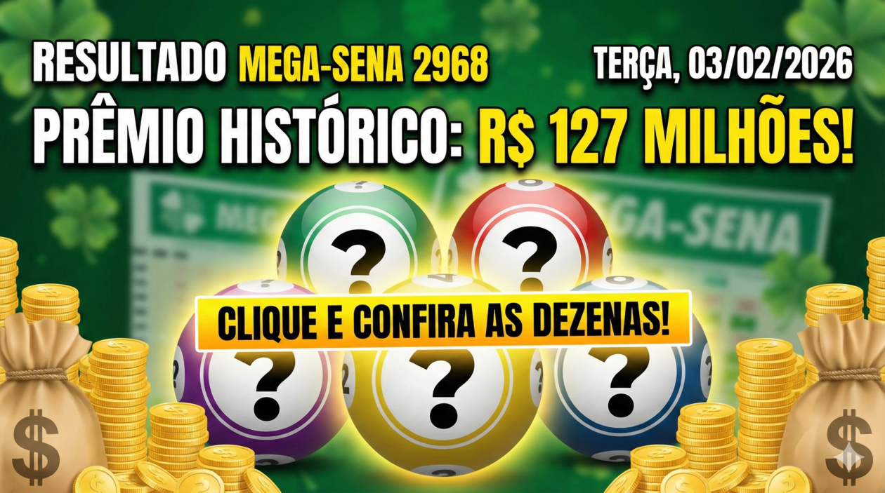 A Caixa Econômica Federal realizou na noite desta terça-feira, 3 de fevereiro de 2026, o sorteio do concurso 2968 da Mega-Sena. O evento ocorreu no Espaço da Sorte, em São Paulo, e atraiu a atenção de apostadores de todo o país de olho no prêmio estimado em R$ 127 milhões.