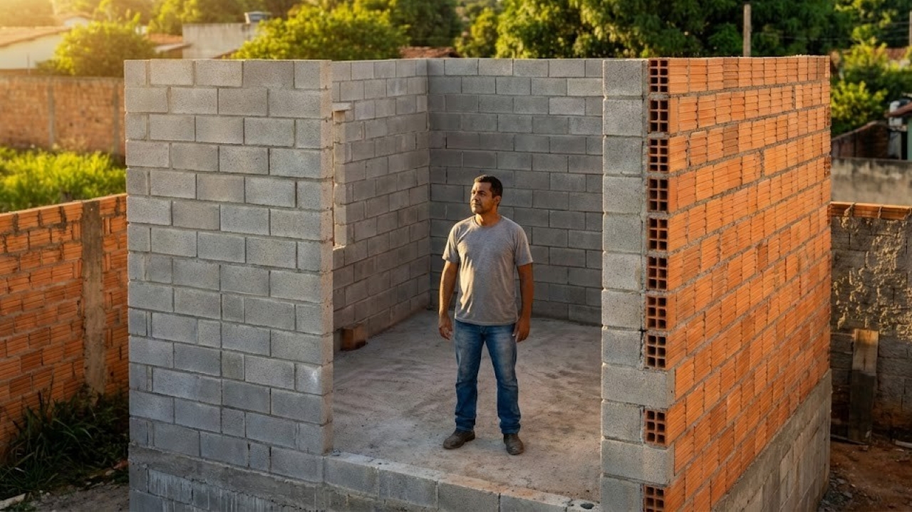 Quem planeja construir uma moradia compacta enfrenta um dilema financeiro imediato na escolha dos materiais básicos. Para uma casa térrea de 40 m², optar pelo bloco de concreto estrutural em vez do tijolo de barro tradicional pode representar uma economia estimada entre 10% e 20% no custo total da obra, cortando gastos excessivos com madeira e etapas de acabamento.
