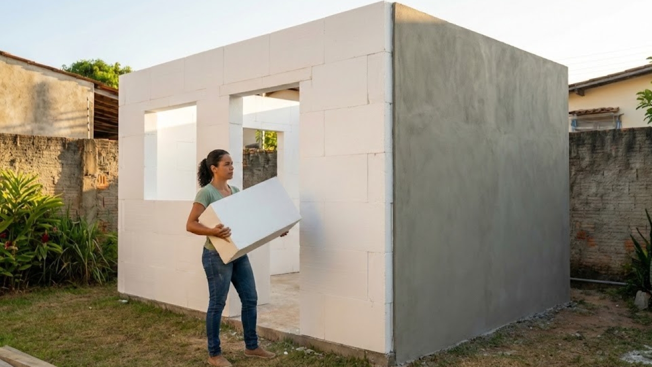 O post Sem concreto, sem tijolo, sem equipe: mulher constrói casa no quintal usando apenas blocos de espuma e gesso entregando solução barata que surpreende engenheiros apareceu primeiro em BM&C NEWS.