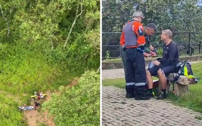 Enquanto o helicóptero sobrevoava a região, pessoas que faziam motocross por ali, encontraram o idoso e o levaram até uma clareira, onde a aeronave conseguiu fazer uma manobra de baixa altura e resgatar o ciclista.