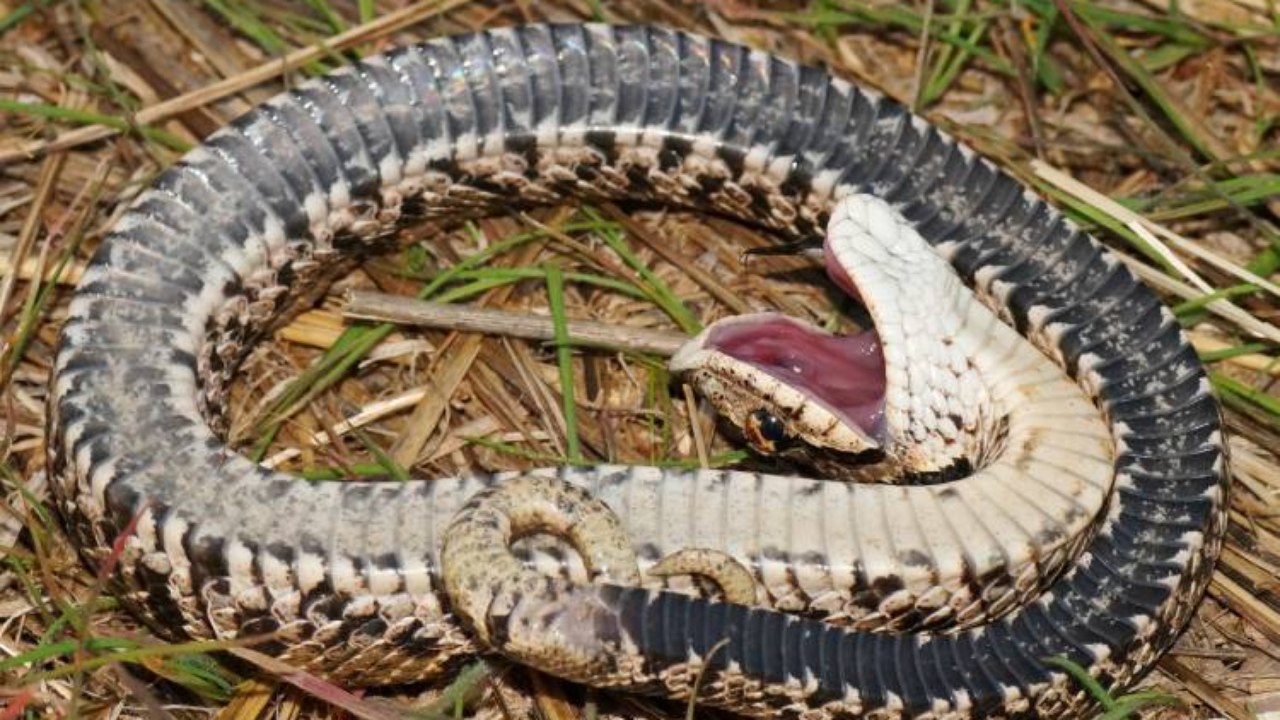 De acordo com o Instituto Butantan, essa adaptação evolutiva não é exclusiva de um único grupo, ela está presente em diferentes espécies de mamíferos, répteis, anfíbios, insetos e até aves. Confira a seguir, alguns desses animais que “brincam” de morto-vivo: Alguns gambás praticam tanatose. O exemplo mais conhecido, segundo o A-Z animals, é o gambá-da-virgínia (Didelphis virginiana), um marsupial nativo da América do Norte. Quando ameaçado, cai de costas, fica imóvel, mostra os dentes, baba saliva e libera um odor forte pelas glândulas anais, na tentativa de afastar predadores.A cobra-nariz-de-porco-oriental (Heterodon platirhinos) são encontradas principalmente na América do Norte, com algumas espécies na América Central e do Sul, e várias espécies são conhecidas por realizar tanatose. Quando ameaçada, começa se contorcendo como se estivesse com dor e exala um odor desagradável. Depois de algum tempo, a cobra se deita de costas com as mandíbulas ligeiramente entreabertas e permanece imóvel. Algumas espécies de pato utilizam a imobilidade como estratégia defensiva, alguns exemplos são o pato-carolino (Aix sponsa) e o pato-real (Anas platyrhynchos). Estudos observaram que patos selvagens simulam a morte ao serem capturados por predadores, aumentando a chance de fuga quando surge uma oportunidade.Nativo do Japão, além de permanecer imóvel, o gafanho-pigmeu (Criotettix japonicus) estica e enrijece as patas em várias direções. Essa postura dificulta que predadores, como sapos, consigam engolir o inseto imediatamente, o que aumenta as chances de sobrevivência do mesmo.A aranha-viúva-negra (Latrodectus hasselti) é parente próxima da viúva-negra e ambas são igualmente mortais para os humanos. Elas se fingem de mortas, enrolando o corpo em uma bola e permanecendo completamente imóveis. Essas aranhas são nativas da Austrália, mas migraram para a Nova Zelândia, Japão e vários outros países através da importação de frutas.A perereca Phyllomedusa burmeisteri, encontrada no Sudeste do Brasil, também adota a tanatose como mecanismo de defesa e pode liberar um odor forte, semelhante ao do percevejo conhecido como maria-fedida, para afastar possíveis predadores.